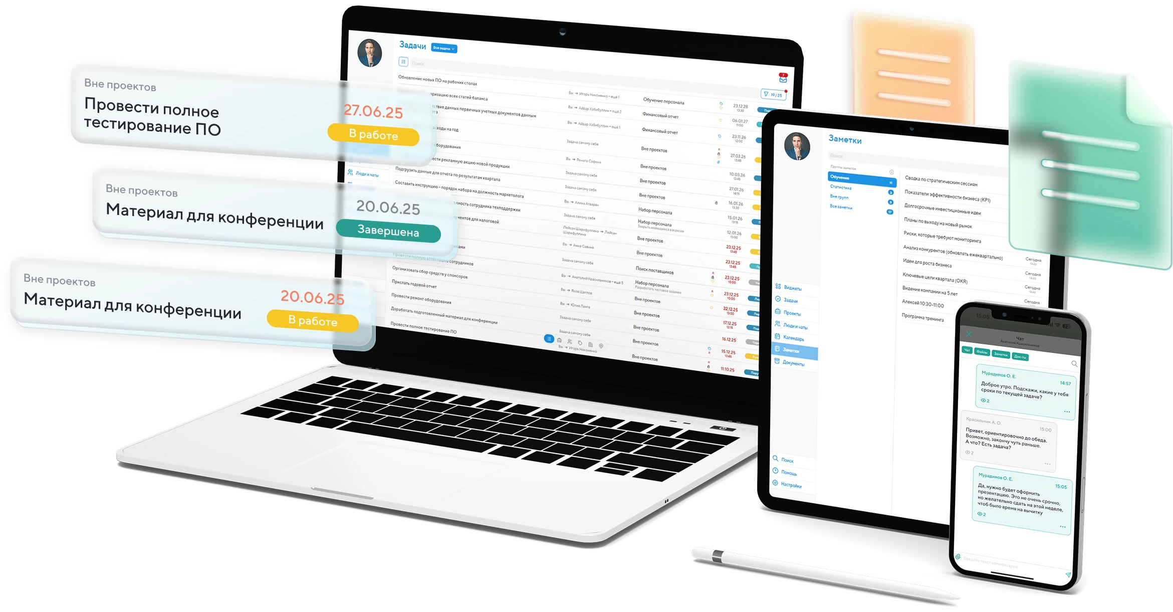 Переходите легко между веб-версией и полнофункциональными приложениями для iOS и Android на смартфонах и планшетах