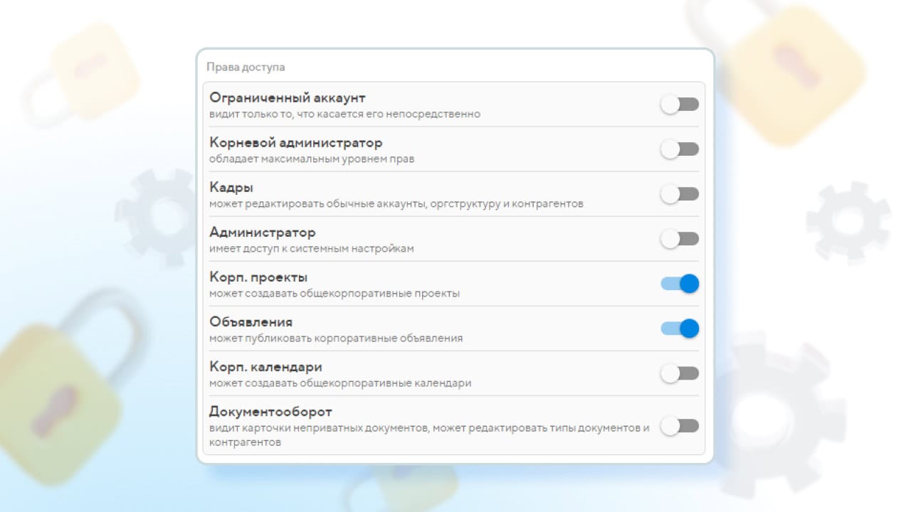 | Раздел для работы с документами | Нет (только работа с вложенными файлами) | Есть + конструктор карточек документов |