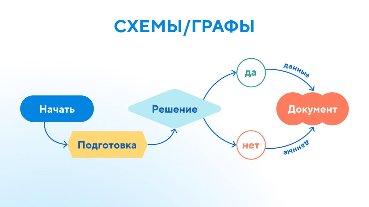 Схемы и графы (позволяют отслеживать связи между разными объектами).
