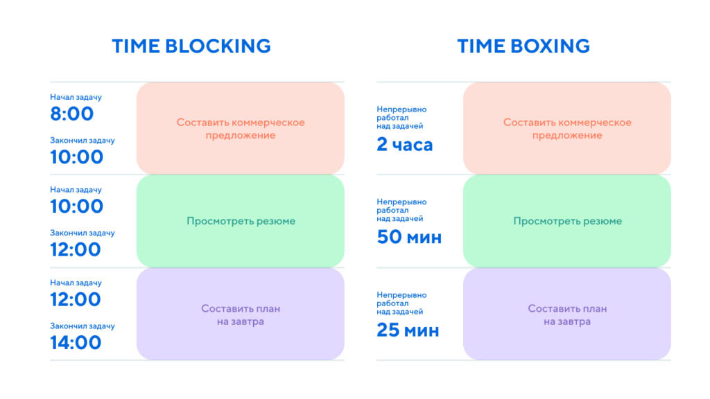 Ниже расскажем о преимуществах и недостатках таких подходов, как тайм-блокинг и тайм-боксинг. Первый используется для управления личным временем, а второй – для управления временем в проектах.
