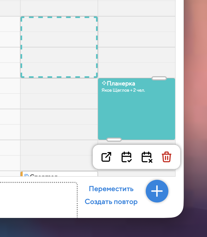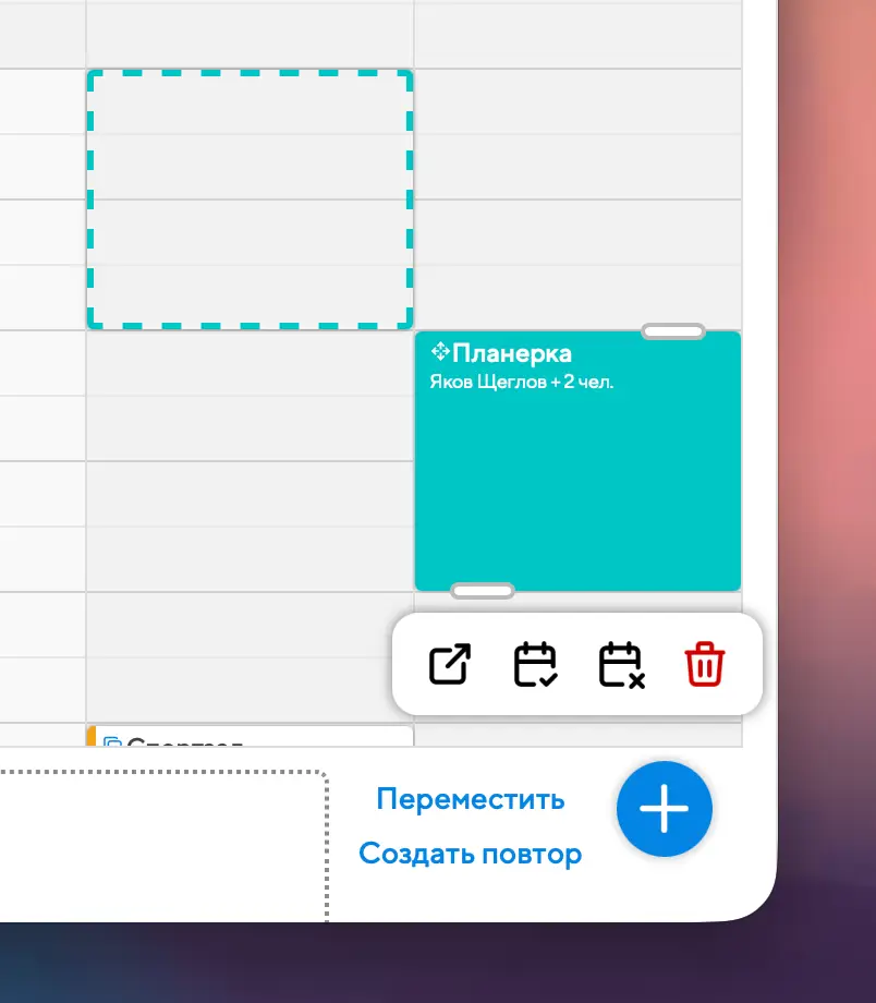 Это делается очень просто: найдите любой из повторов события в календарной сетке и перетащите его на то время, когда вы хотите провести внеочередной повтор. Появится окошко, в котором вам нужно будет нажать на кнопку "Создать повтор":