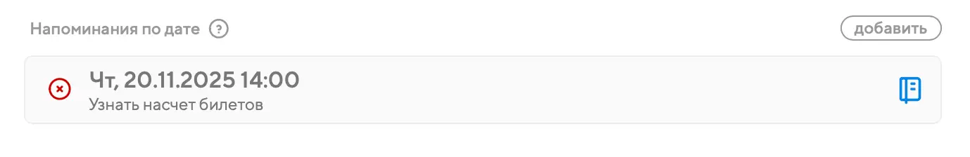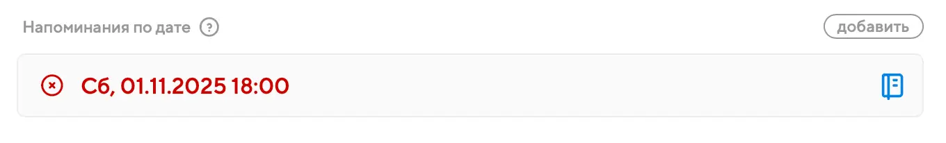 Для напоминаний по датам справа вы увидите кнопку в виде заметки. Нажав на неё, вы сможете указать дополнительный текст, который отобразится, когда вам придёт это напоминание:
