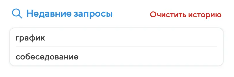 Ваши последние поисковые запросы отображаются под секцией "Области поиска", чтобы повторно начать поиск по недавнему запросу необходимо нажать на него и выбрать соответствующую область поиска.
