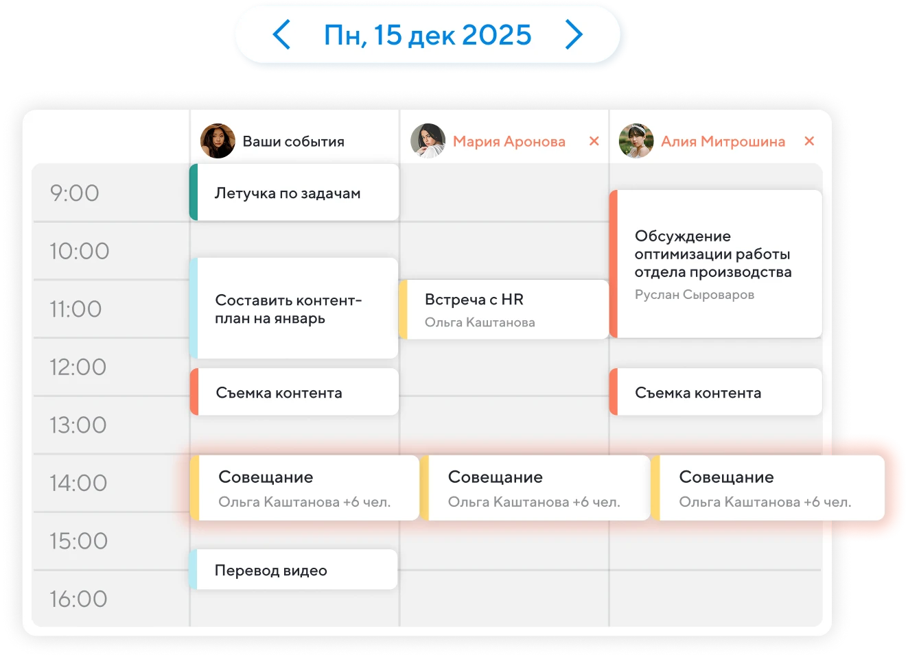 Календарь событий помогает не пропустить дедлайны и видеть нагрузку коллег