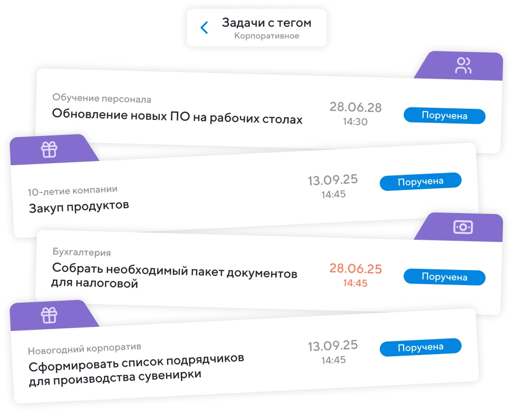 Например, подчиненные не могут удалять файлы, редактировать повестки или менять сроки без одобрения руководителя.