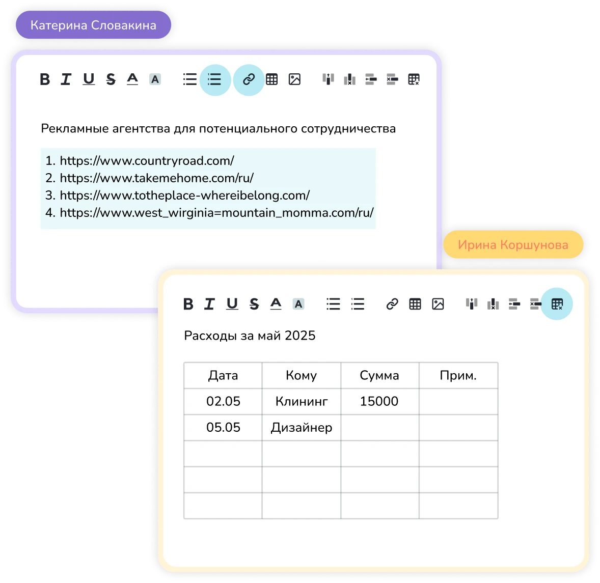 Планируйте сами или работайте вместе: список можно вести для себя, а можно поделиться с коллегами
