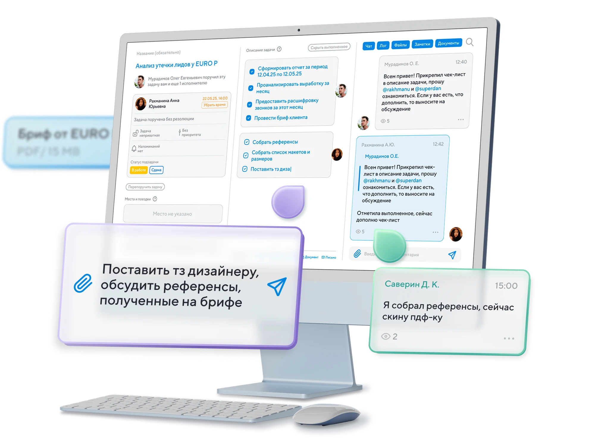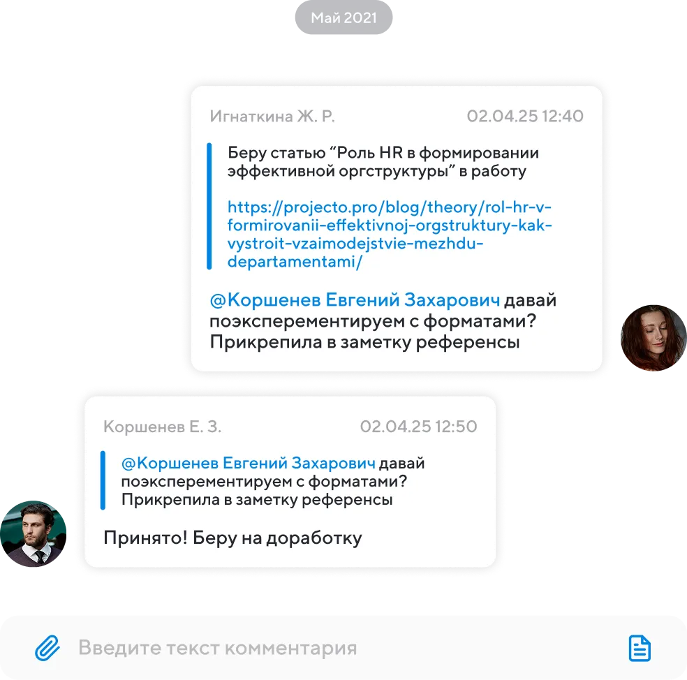 Обсуждайте проекты, документы или задачи прямо в рабочих чатах и не теряйтесь в мессенджерах