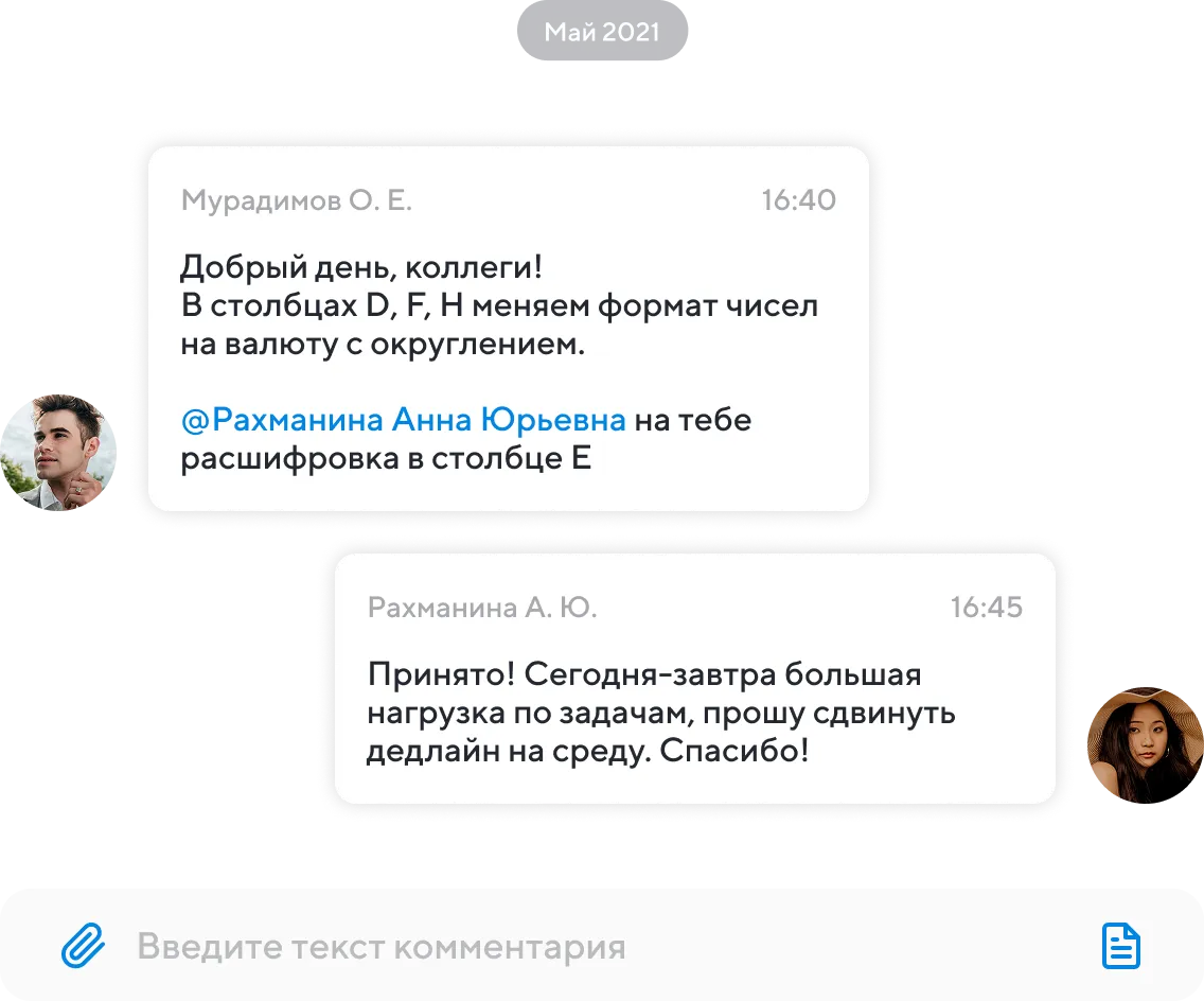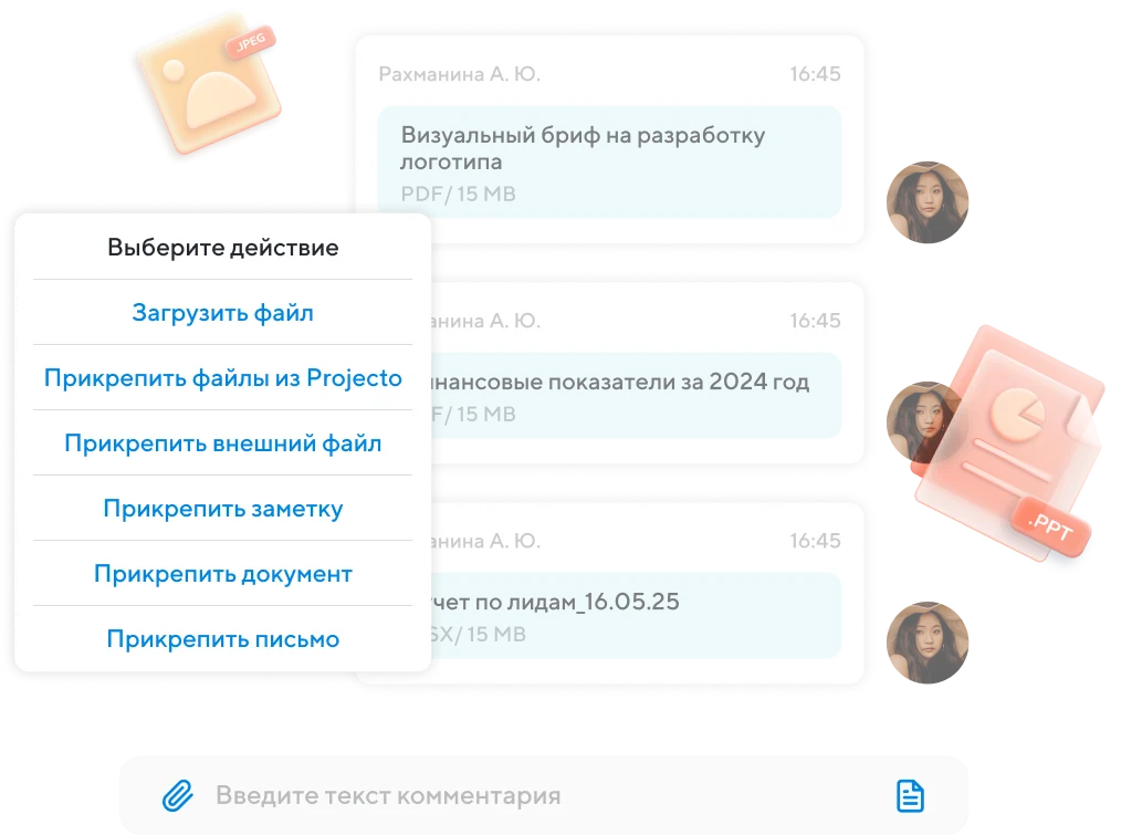 Комментируйте задачи, уточняйте детали, принимайте решения с командой в чате Projecto. Без лишних сложностей и платформ.