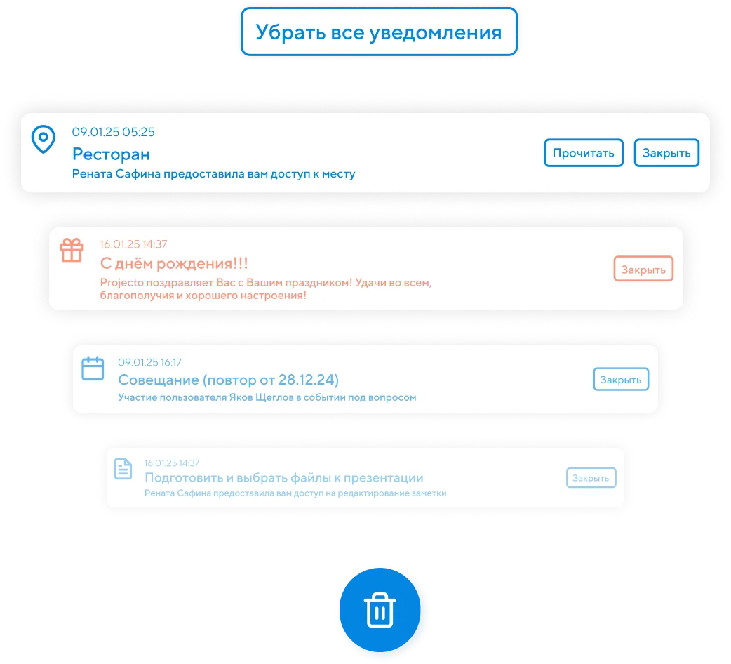 Встреча в переговорке? Важная конференция? Созвон? Вы не пропустите: Projecto напомнит обо всех событиях.
