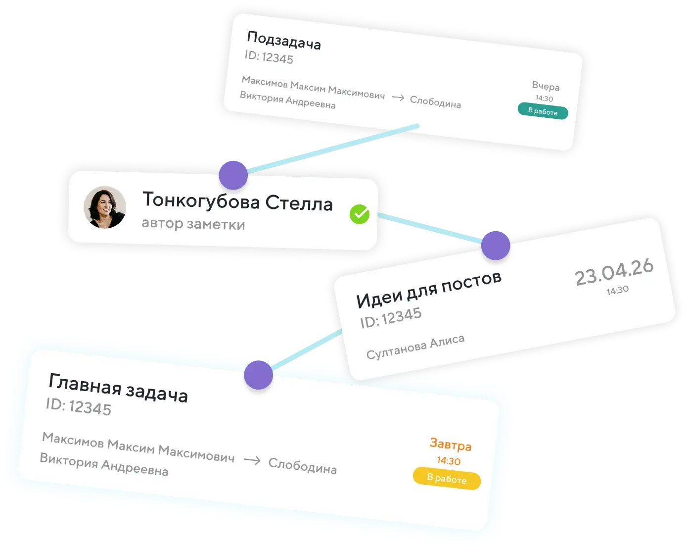 Создавайте основную задачу, добавляйте вложенные уровни и стройте структуру под любую логику