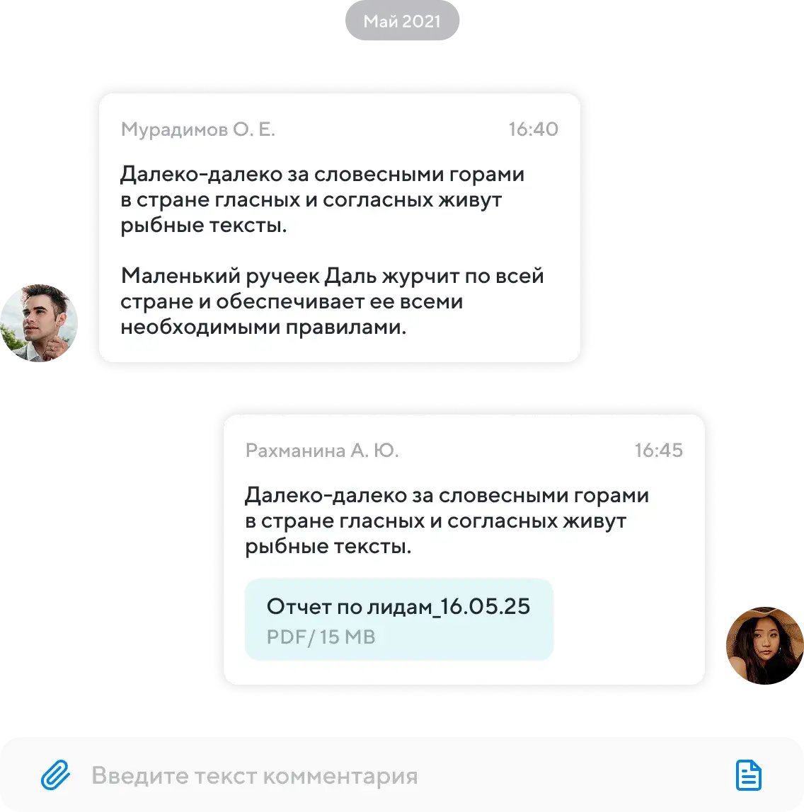 Не нужно искать обсуждения в разных мессенджерах — во встроенных чатах к задачам все всегда под рукой