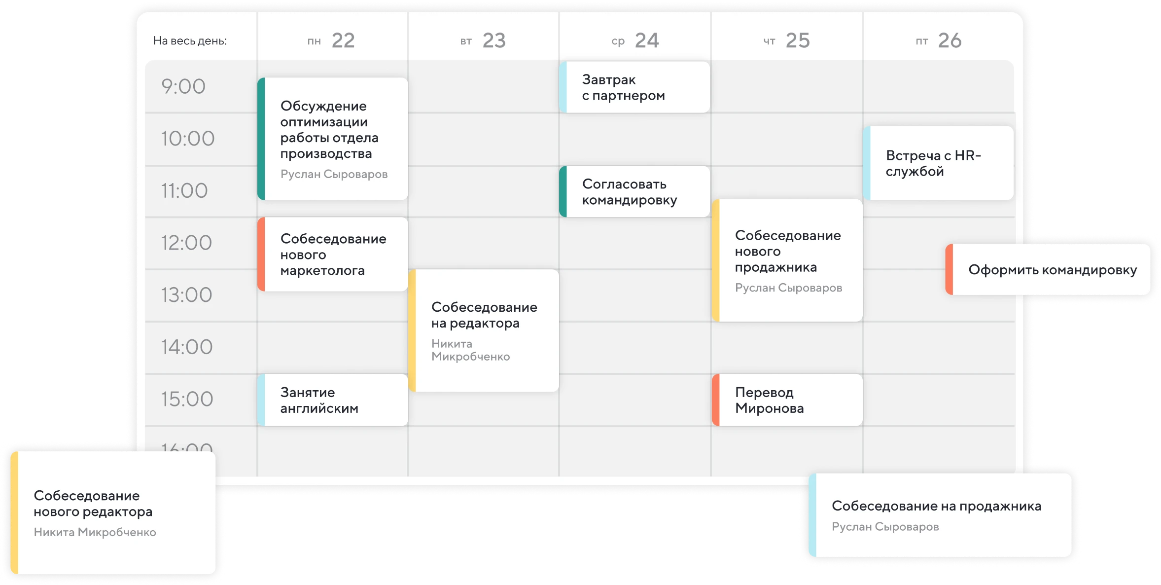 Объявили планёрку, поставили большую задачу, запланировали созвон — сразу закрепили в календаре