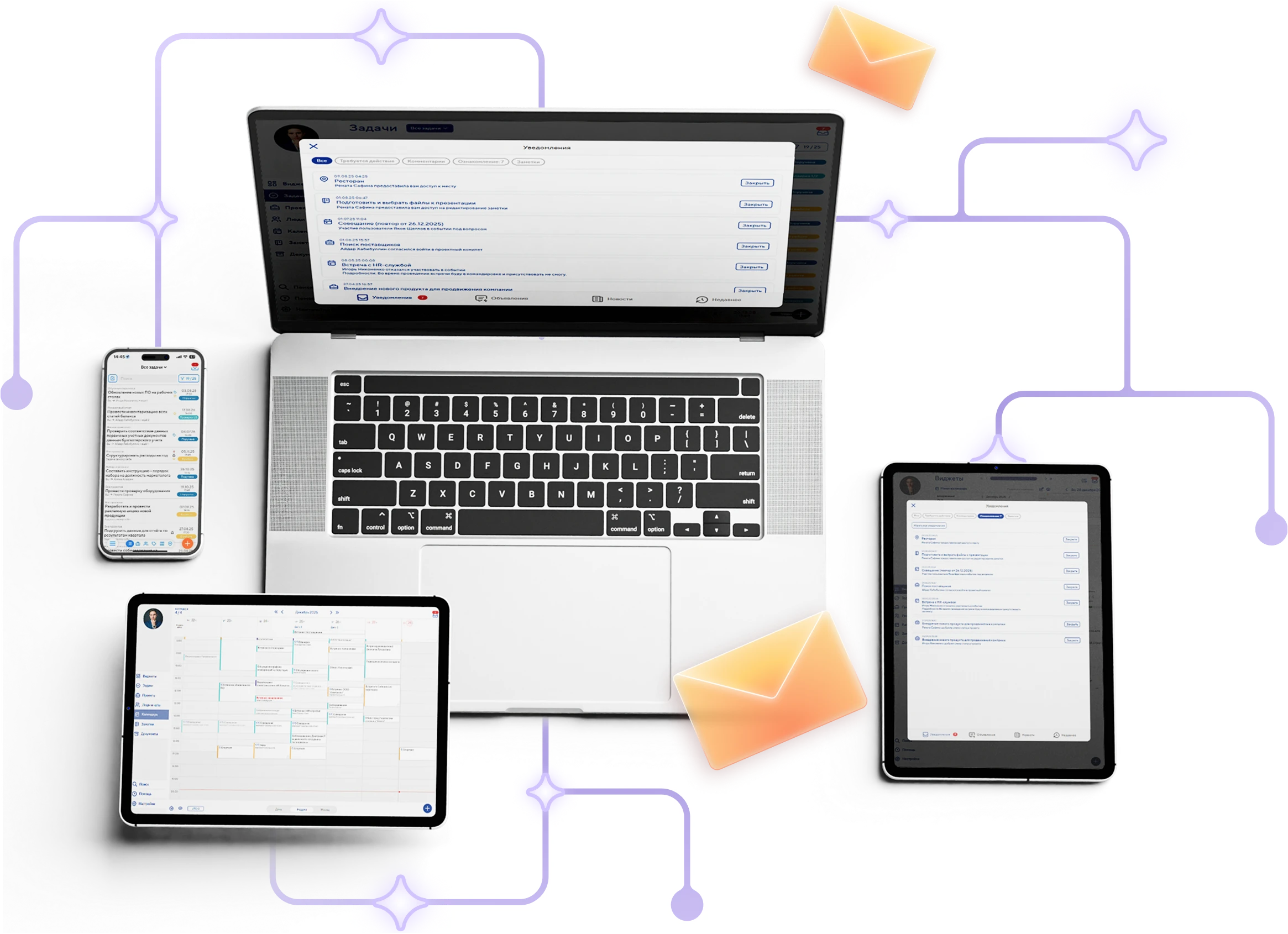 Переходите легко между веб-версией и полнофункциональными приложениями для iOS и Android на смартфонах и планшетах
