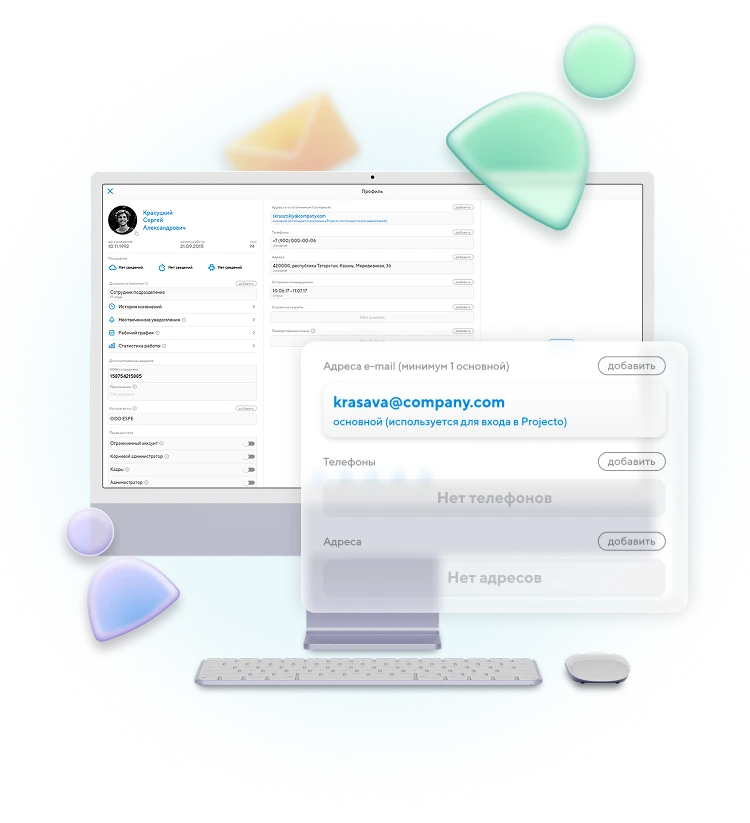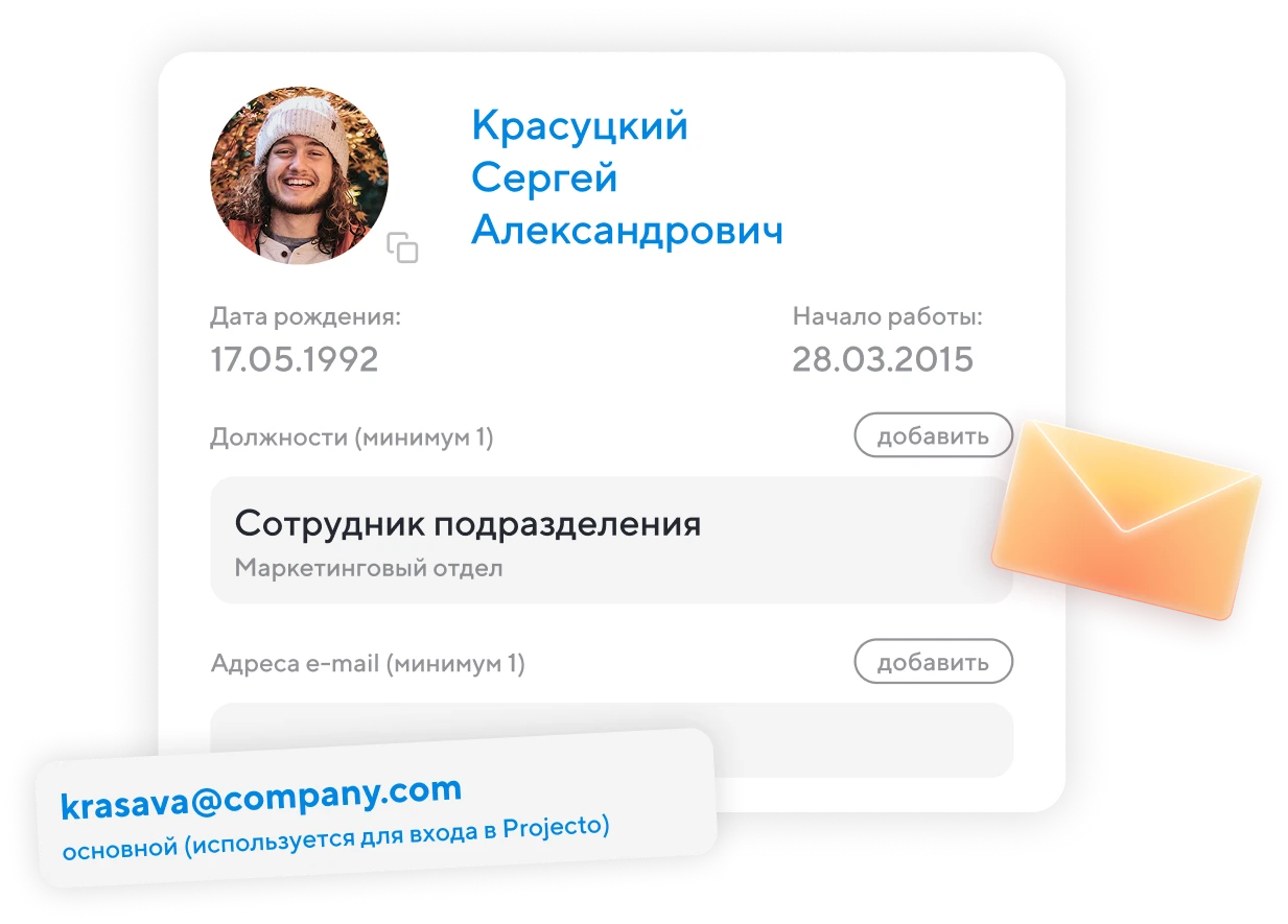 Ведите персональные карточки с контактами, должностью, доступами