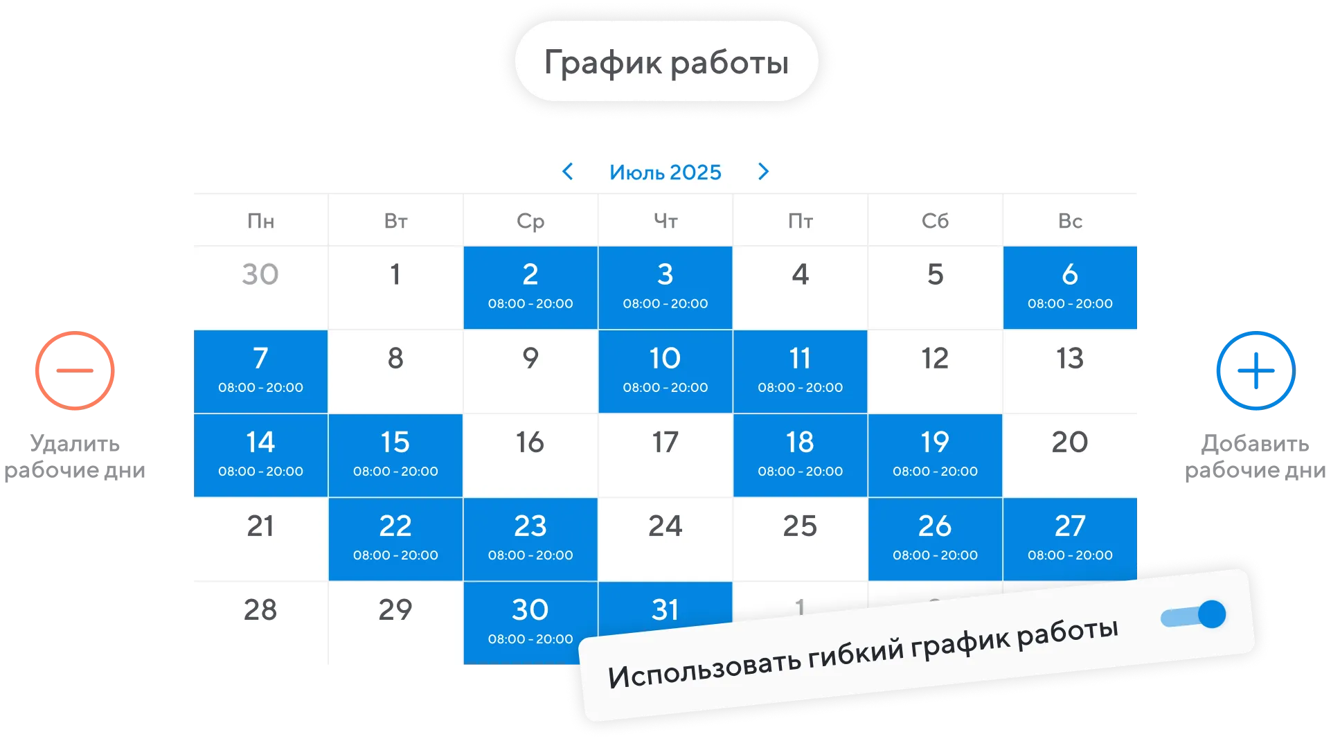Рабочий график у каждого сотрудника: начало работы и конец видно сразу