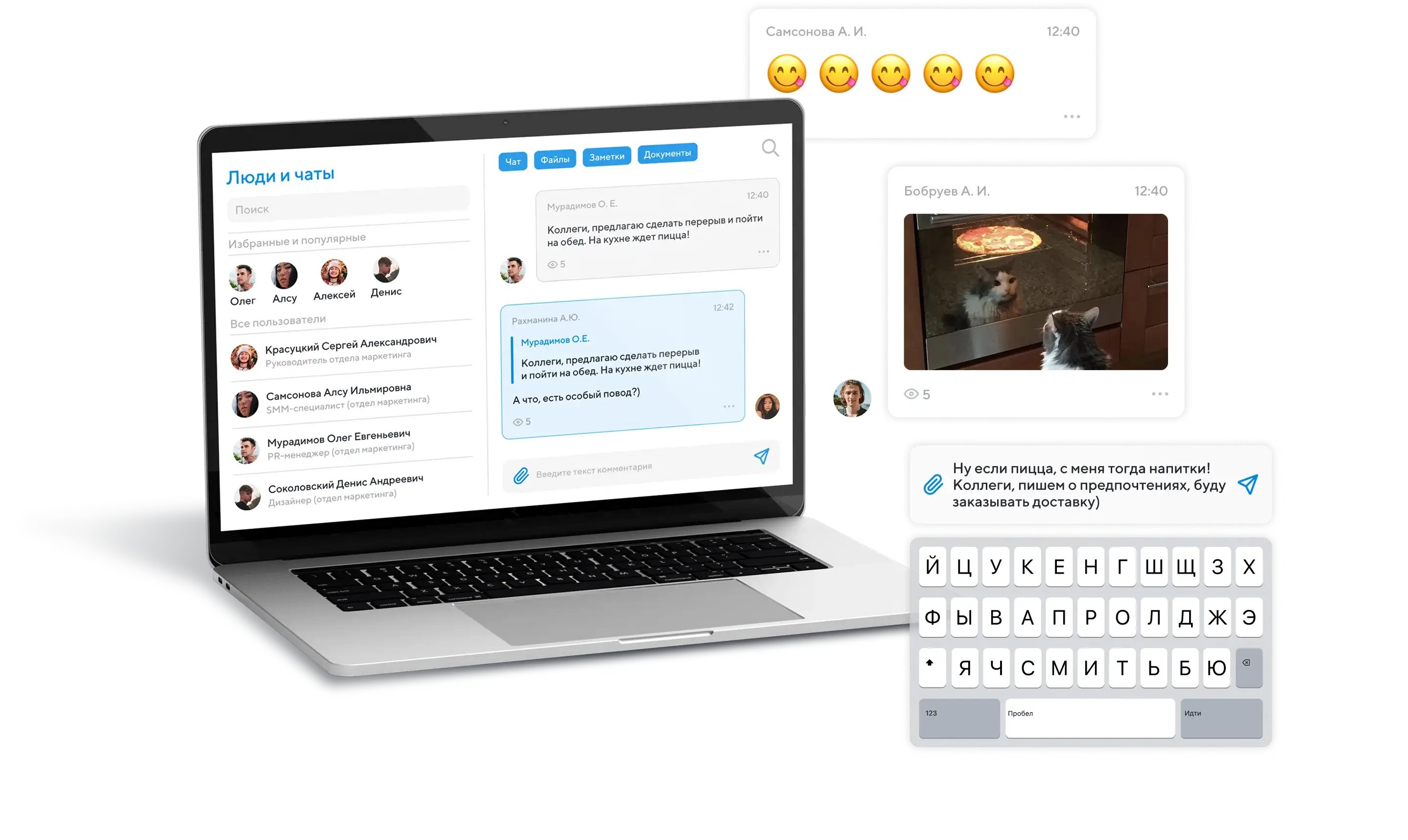 Обсуждайте задачи, проекты и события или просто обменивайтесь мемами в чате. Мы никому не скажем 🤫