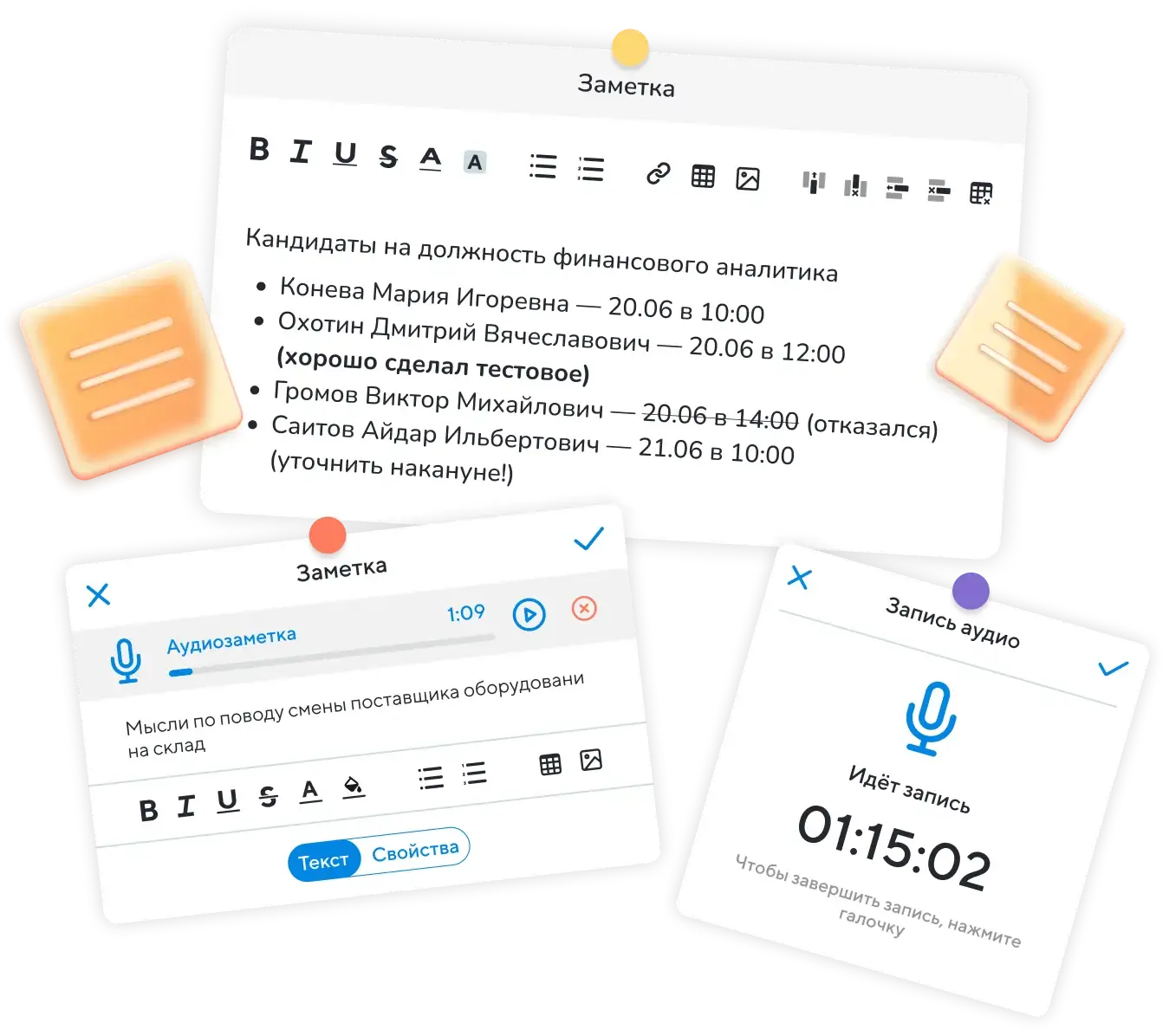 В голове каша, на столе стикеры? Заметки в Projecto всегда под рукой: пишите идеи, мысли, черновики прямо в сервисе.