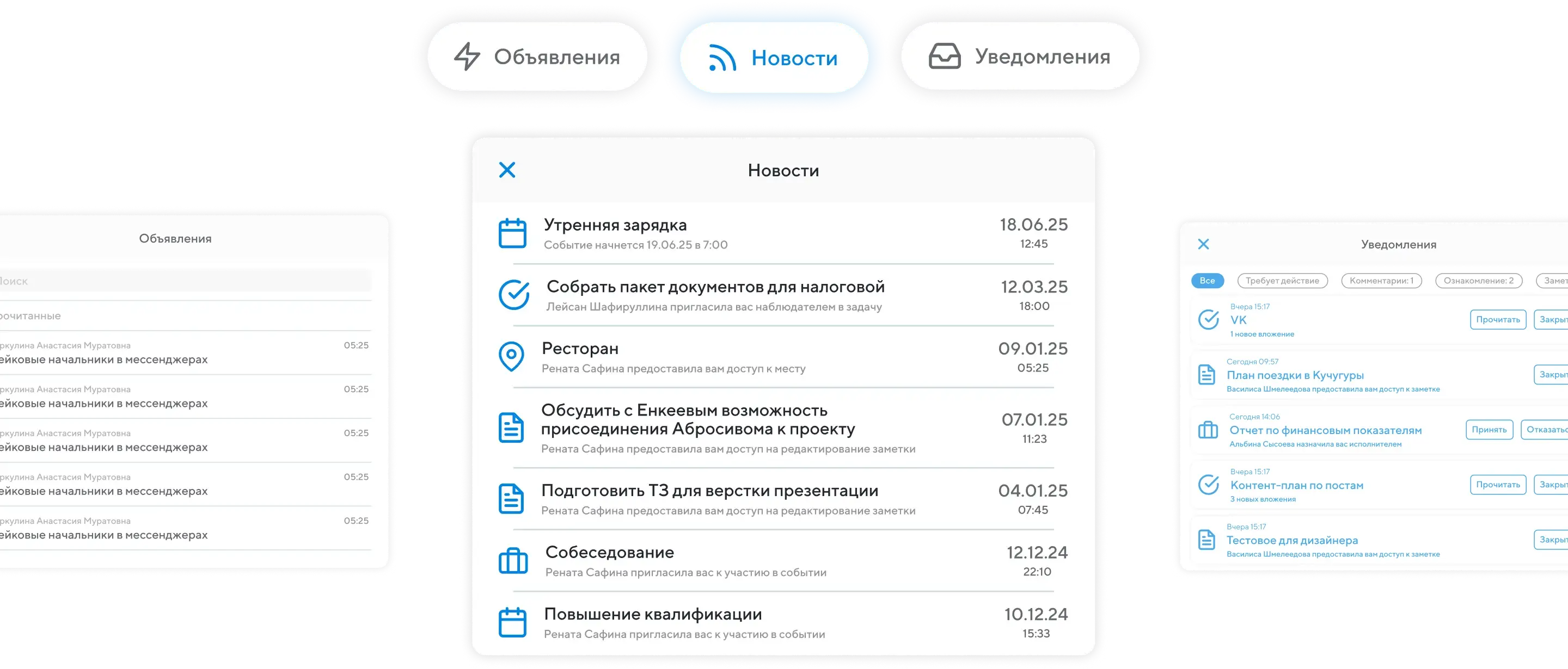 Объявления, новости, внутренняя кухня. Читайте то, о чем раньше узнавали из слухов от коллег, прямо в инбоксе.