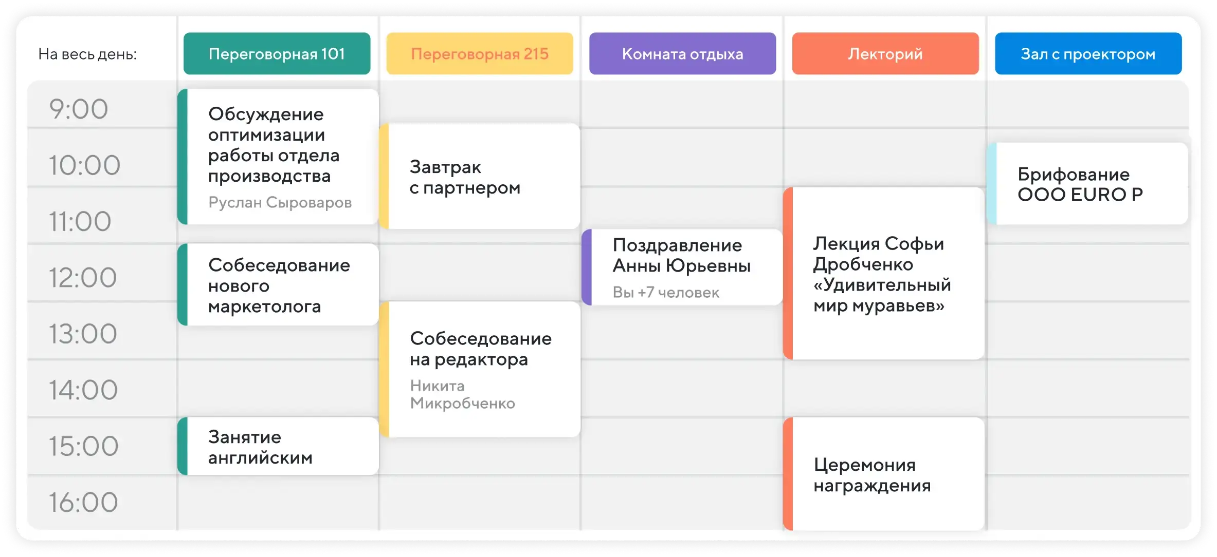 Создали событие с участниками, забронировали нужную комнату — Projecto добавит ресурс в календарь и покажет его всем, кто в деле
