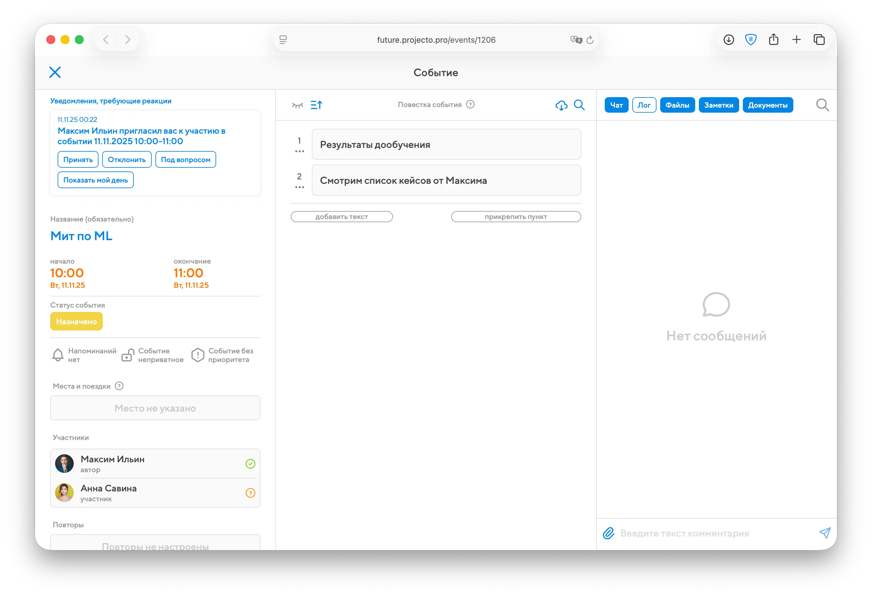 Если у вас возникли вопросы, касающиеся события, вы можете задать их в чате. Всё устроено точно так же, как в задачах. Оставлять комментарии может любой участник события.