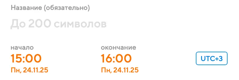 Название события обязательно к заполнению и должно отражать его тему. Максимальная длина названия – 200 знаков.