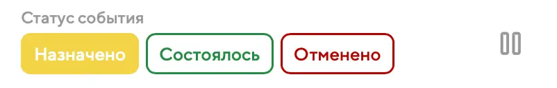 Статус события – для большинства событий изменяется автоматически, поэтому обычно поле недоступно для редактирования. Более подробную информацию по статусам событий можно посмотреть здесь.