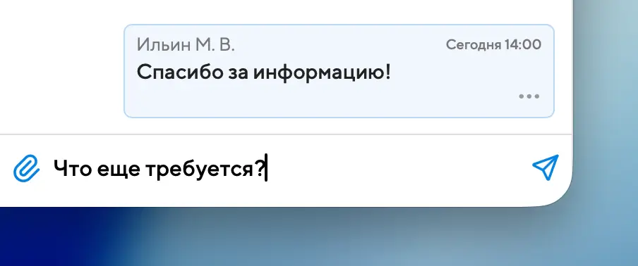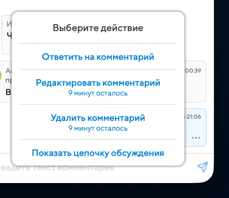Комментарии добавляются в ленту активности с помощью формы в нижней части. Чтобы отправить сообщение, нажмите на кнопку в виде самолётика. В одном комментарии вы можете комбинировать текст и любое количество вложений.