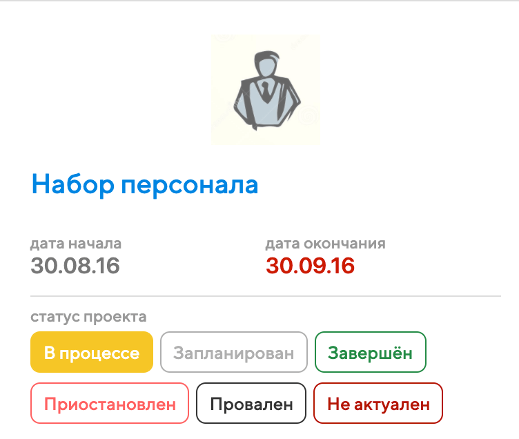 Статус проекта – показывает состояние работ по проекту в данный момент. Менять статус проекта имеют право его автор и руководитель. В Projecto возможны следующие статусы проектов: