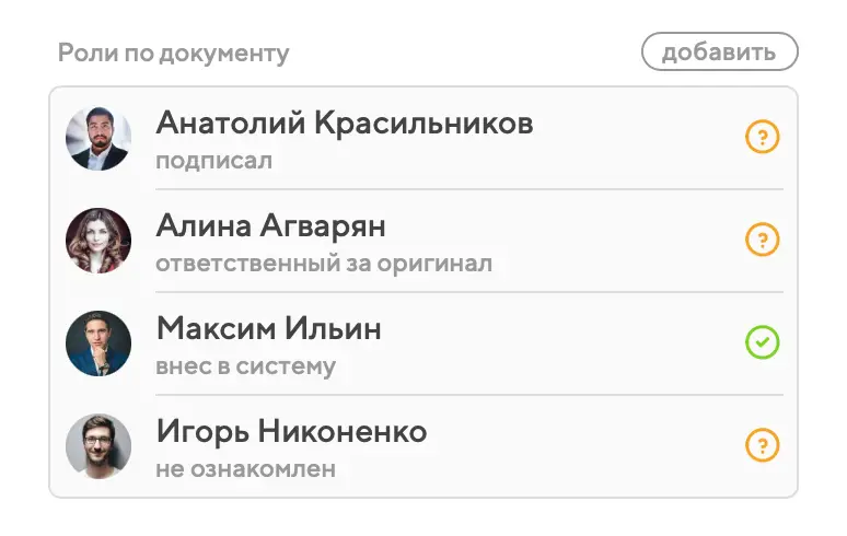 По любому документу предусмотрены пять ролей участников: