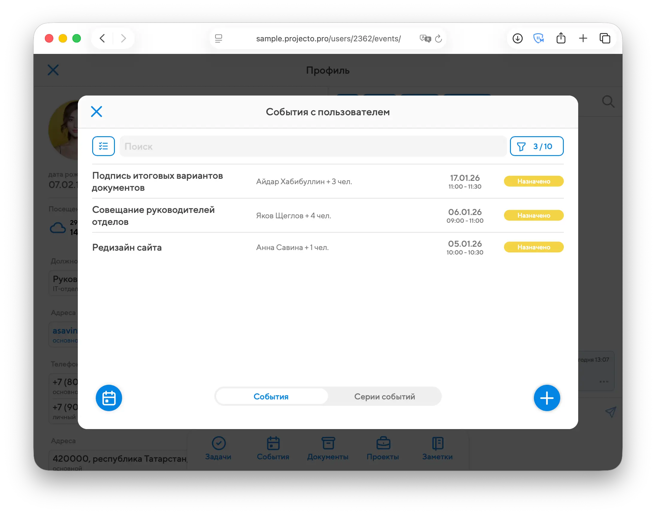 Персональные данные в сводке (например, домашний телефон или адрес проживания) видны исключительно специалистам по кадрам и вашему руководству. Остальные пользователи никакой конфиденциальной информации в Projecto не видят.