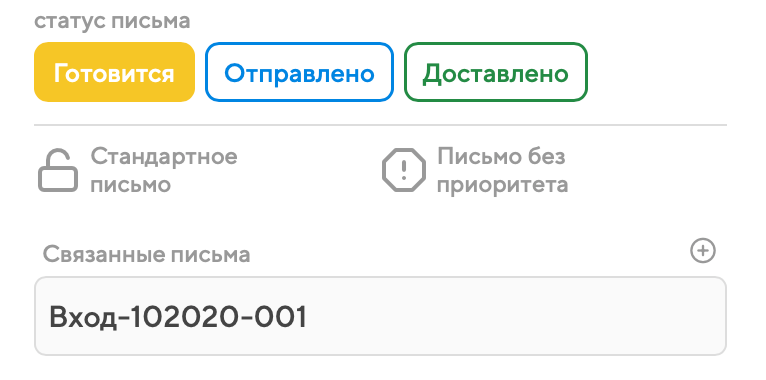 После сохранения исходящего письма то входящее письмо, на которое вы отвечали, автоматически изменит статус на "Отвечено":