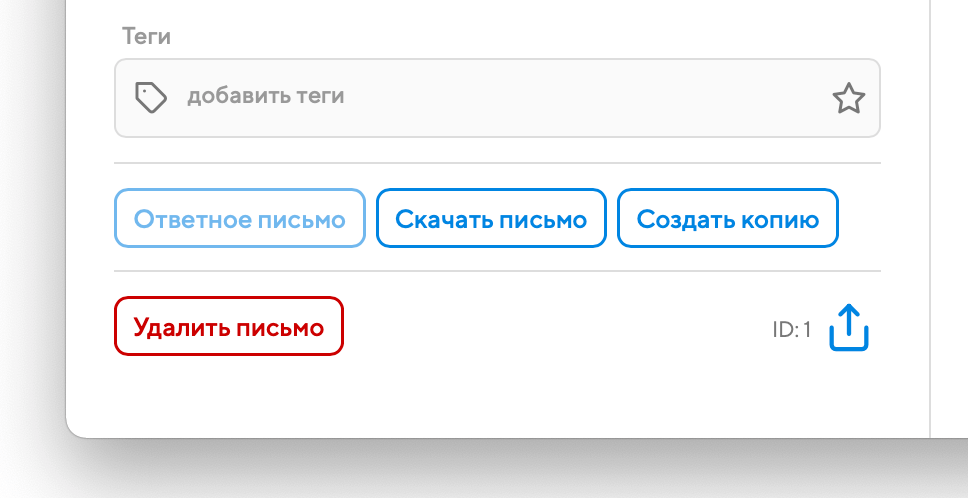 После того, как вы заполните необходимые данные и нажмете "Сохранить", письмо сохранится в системе Projecto и в связях входящего письма, из которого создавали ответное письмо, будет отображаться номер ответного письма.