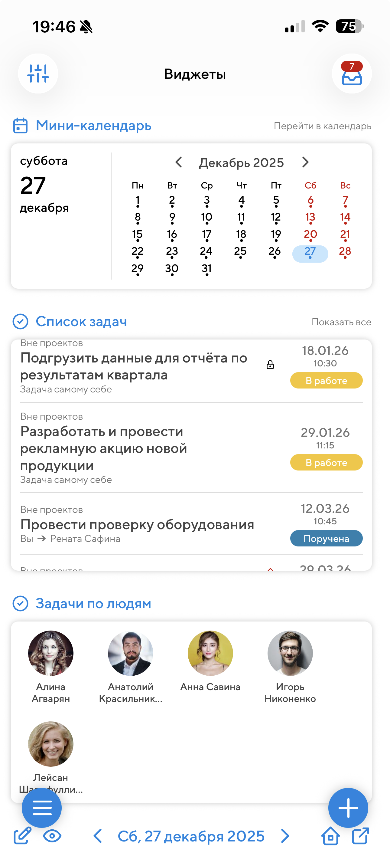 То, как вы настроите виджеты, зависит только от ваших потребностей и фантазии. Например, вы можете сделать выборку порученных вами задач за последние две недели, рядом показать дела на день и календарную сетку, справа разместить истекающие документы, а под ними – избранные заметки.