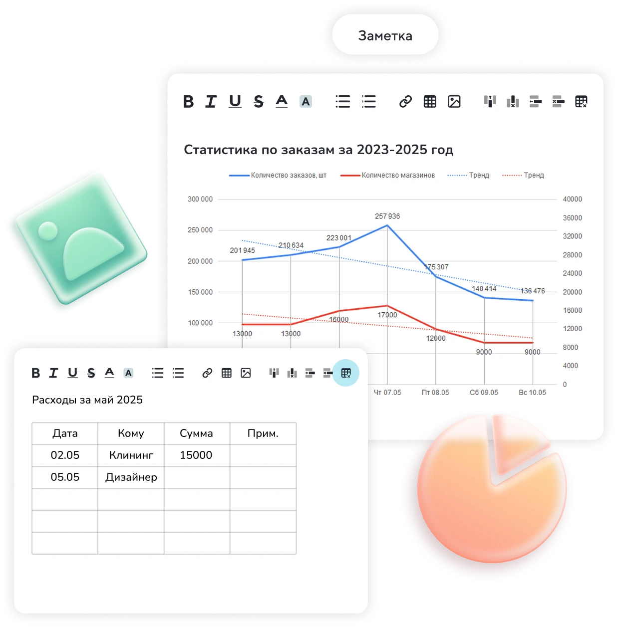 Создавайте и редактируйте таблицы прямо в заметках: задачи, бюджеты, план-графики — без переключений между вкладками