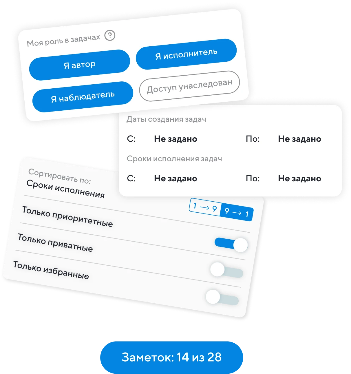 Фильтруйте заметки по приоритету и роли — найдется все
