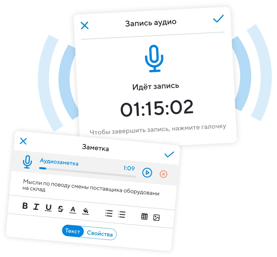 Записывайте идеи, фиксируйте встречи, добавляйте аудиозаметки,изображения и PDF — заметки для продуктивной работы всегда под рукой